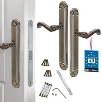 Klamka drzwiowa długi szyld zdobiona retro patyna zamek na wkład 72 mm