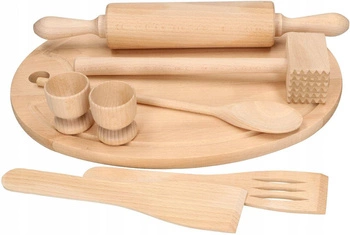 Zestaw stolnica wałek tłuczek łyżka przybory kuchenne drewniane