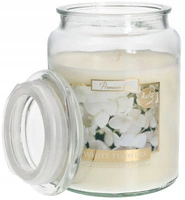 Świeca świeczka duża zapachowa w szkle z wieczkiem 100 h - białe kwiaty