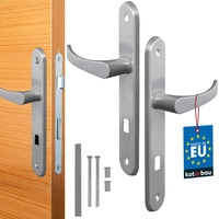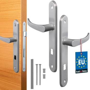 Zestaw klamka drzwiowa 72 srebrna długi szyld na klucz