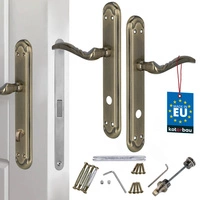 Klamka drzwiowa długi szyld zdobiona patyna na wkładkę 72 mm