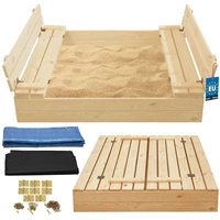 Piaskownica dla dzieci z ławkami zamykana drewniana duża naturalna 120 cm