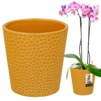 Doniczka ceramiczna musztardowa na kwiaty rośliny storczyki 9,5 cm