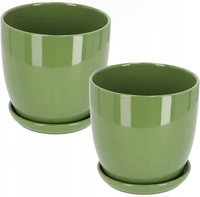Doniczka donica osłonka ceramiczna z podstawką zielona ⌀15 cm - 2 szt.