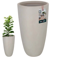 Doniczki wykonane są z lekkiego, odpornego na warunki atmosferyczne tworzywa sztucznego, które imituje ceramikę lub beton, a jednocześnie jest trwałe i łatwe w czyszczeniu.
