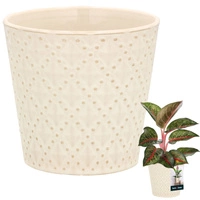 Doniczka trapezowa ceramiczna szkliwiona na kwiaty 12 cm - Kolor kremowy