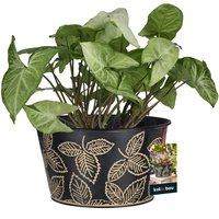 Doniczka okrągła stalowa na kwiaty rośliny zioła do kuchni salonu - Kolor czarna ze złotymi liśćmi
