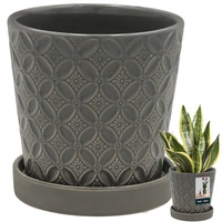 Doniczka okrągła szara z podstawką ⌀ 13 cm