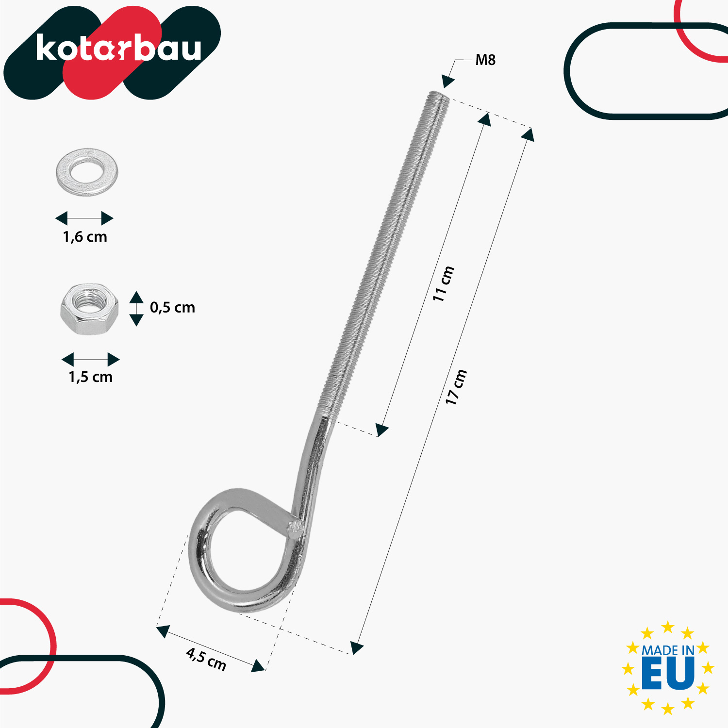 HAK HUŚTAWKOWY WKRĘCANY NIERDZEWNY M8 170 MM