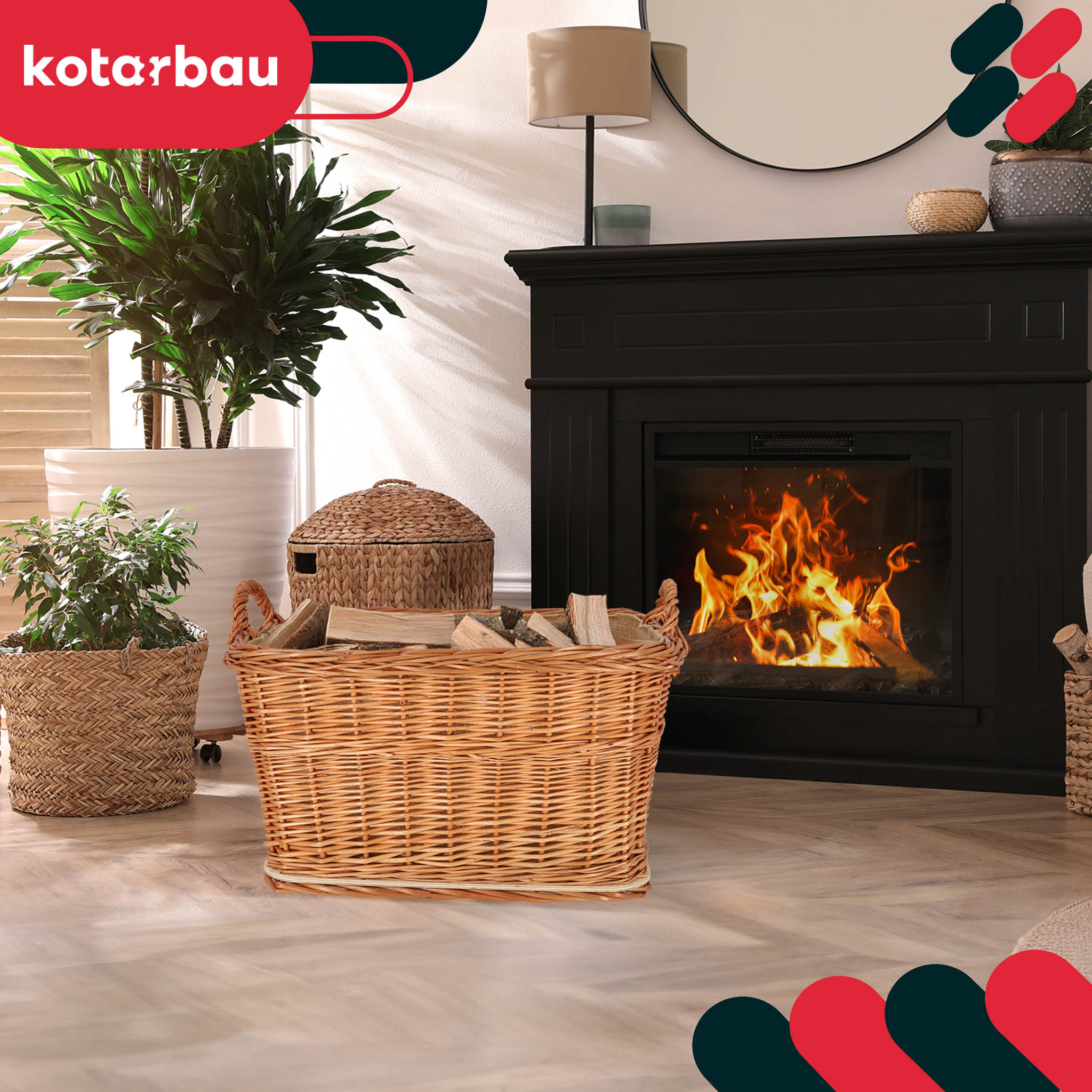• Elegancja i naturalny urok kosza kominkowego z wikliny przyciągają wzrok i wprowadzają do wnętrza przyjemną, ciepłą atmosferę. Kosz ten zachwyca precyzyjnym wykonaniem i klasycznym wzornictwem, które doskonale wpisuje się w różne style dekoracyjne – od rustykalnego i skandynawskiego po nowoczesne aranżacje.