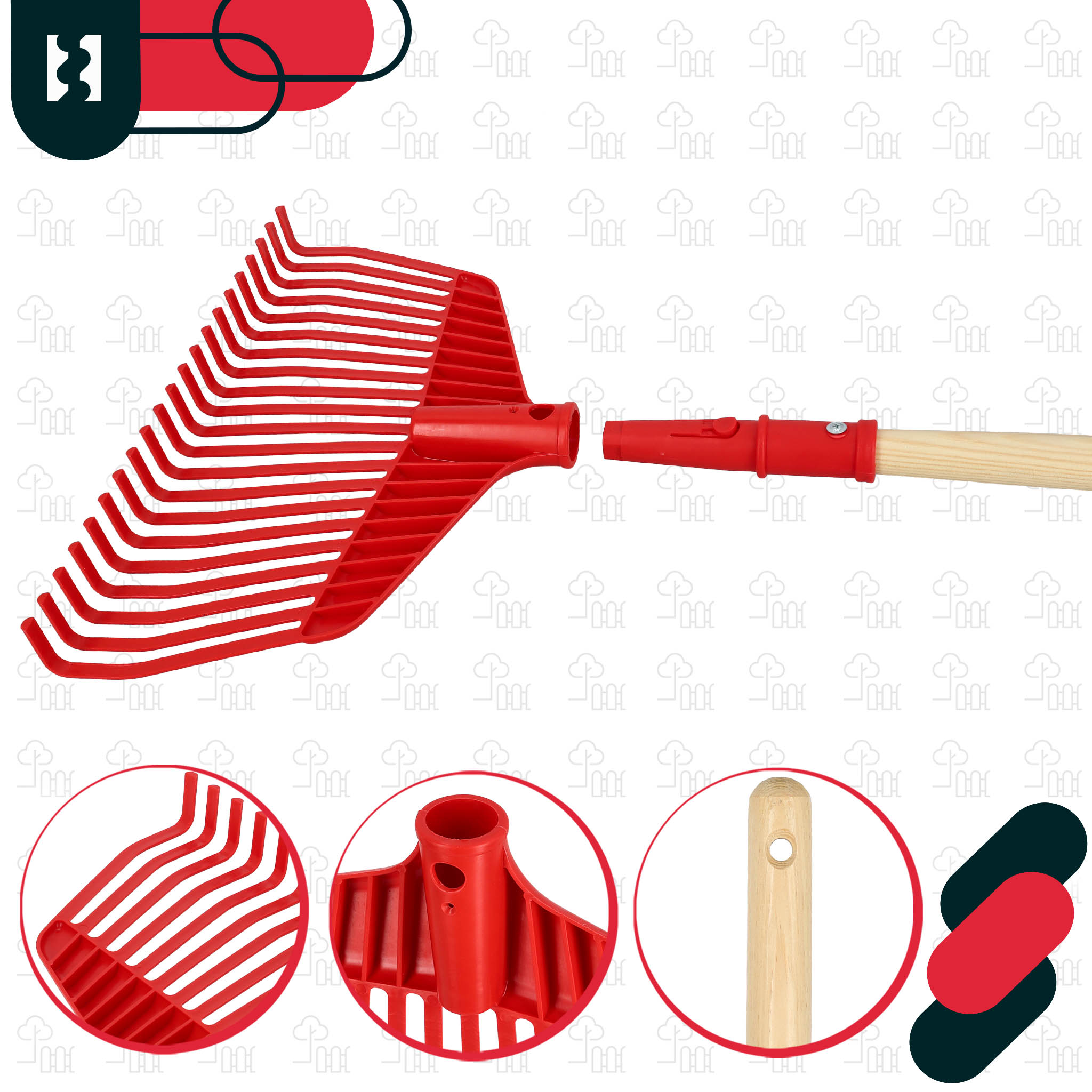 - Wyprofilowane zęby grabi zostały zaprojektowane tak, aby skutecznie zbierać liście, trawę, gałązki czy inne odpady ogrodowe. Odpowiednia elastyczność elementów roboczych zwiększa efektywność pracy i pozwala na dokładne sprzątanie zarówno z twardych, jak i miękkich nawierzchni.