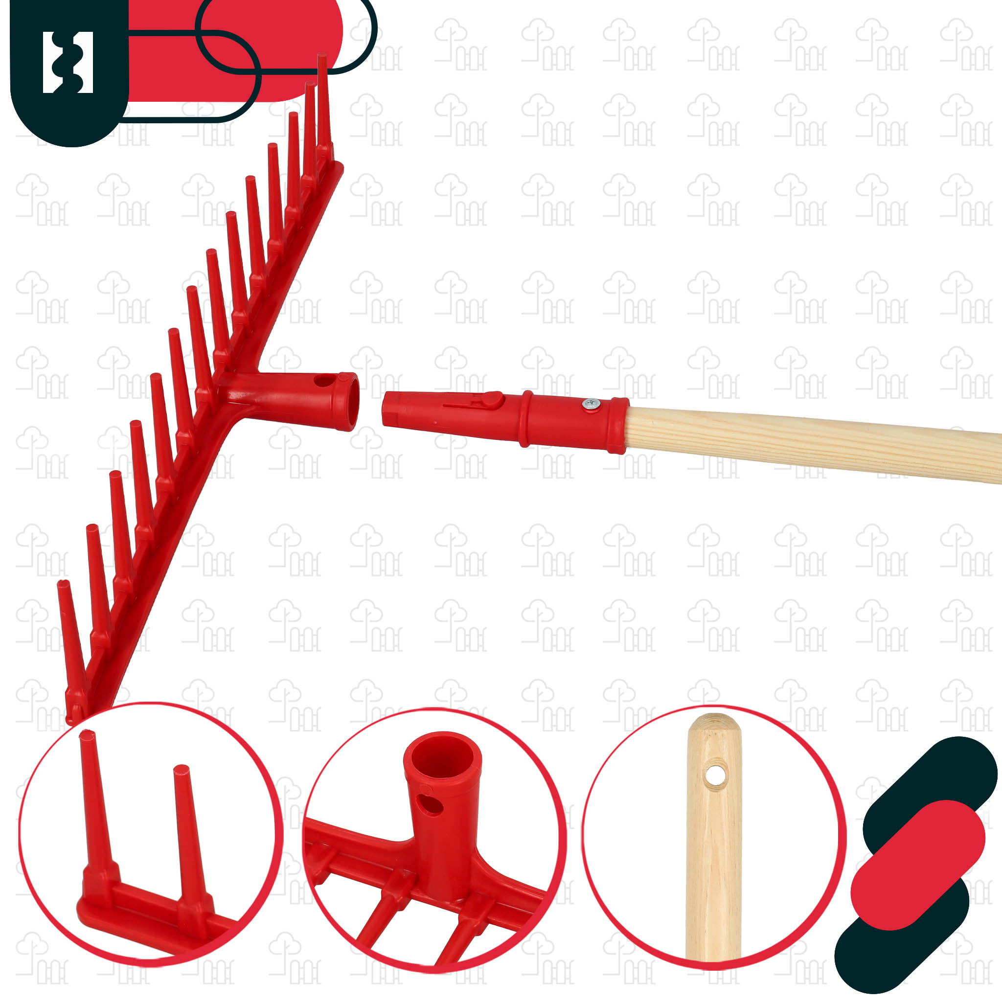 - Dzięki zastosowaniu odpornego na uszkodzenia mechaniczne tworzywa sztucznego grabie charakteryzują się długą żywotnością i odpornością na intensywne użytkowanie. Materiał jest niewrażliwy na wilgoć oraz zmienne warunki atmosferyczne, co sprawia, że narzędzie doskonale sprawdzi się zarówno wiosną, latem, jak i jesienią.