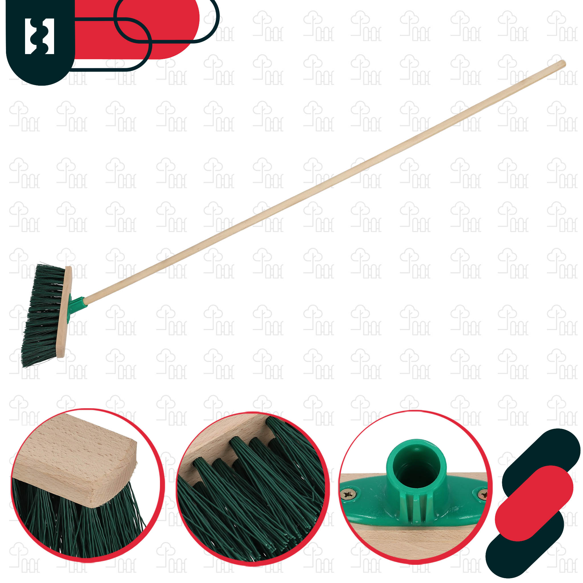 • Twarde włosie z włókna PET i włókna kokosowego nie odkształca się i nie łamie nawet przy pracy na szorstkich nawierzchniach, takich jak asfalt czy kostka brukowa. Dzięki temu szczotka zachowuje swoje właściwości przez długi czas, zapewniając skuteczne zamiatanie zarówno w domu, jak i w przestrzeniach przemysłowych.