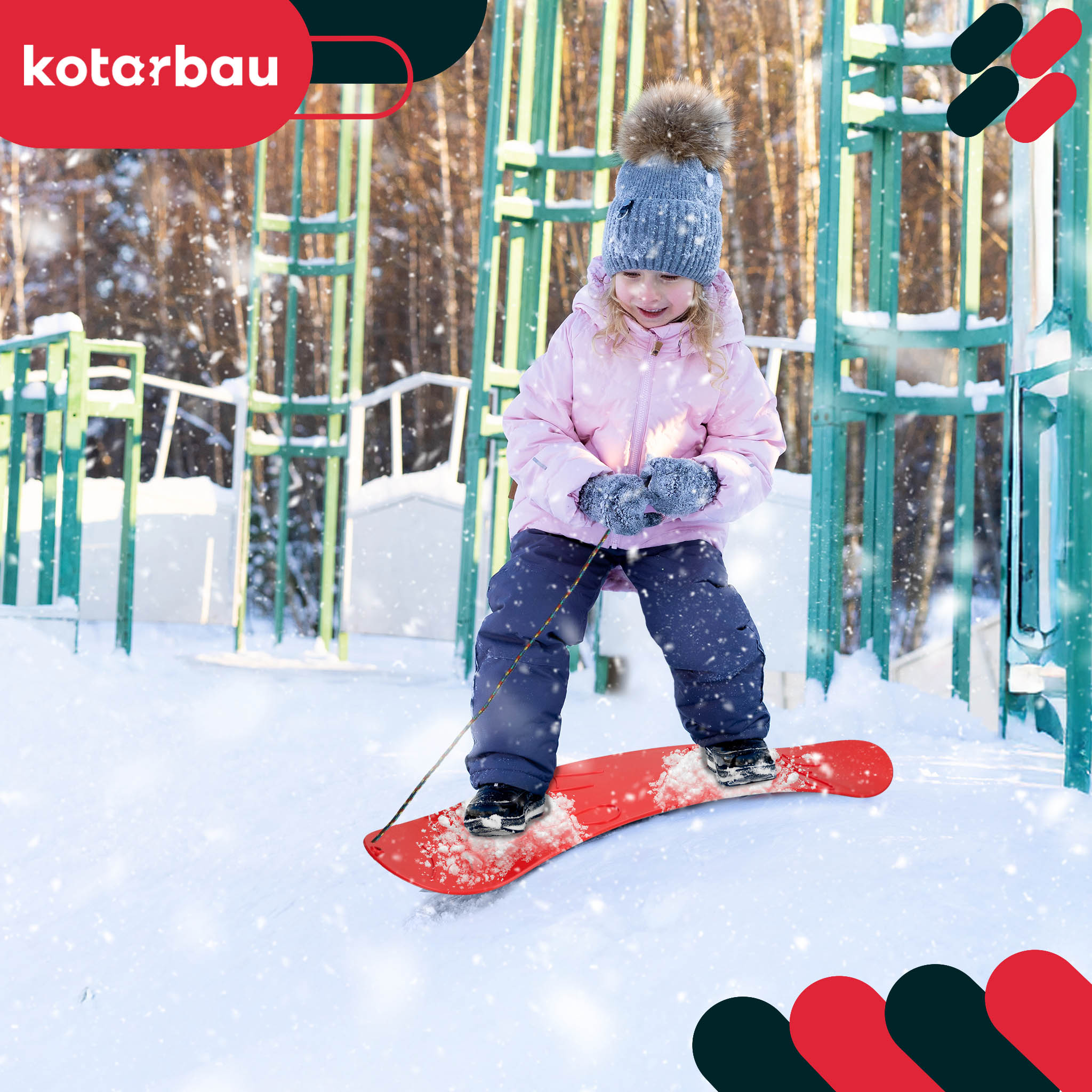 - Mocny sznurek oraz praktyczna rączka pozwalają na wygodne prowadzenie i transport deski, a jednocześnie umożliwiają kontrolowane zjazdy. Dzięki tym rozwiązaniom dziecko może cieszyć się szybką, ale bezpieczną zabawą na śniegu.